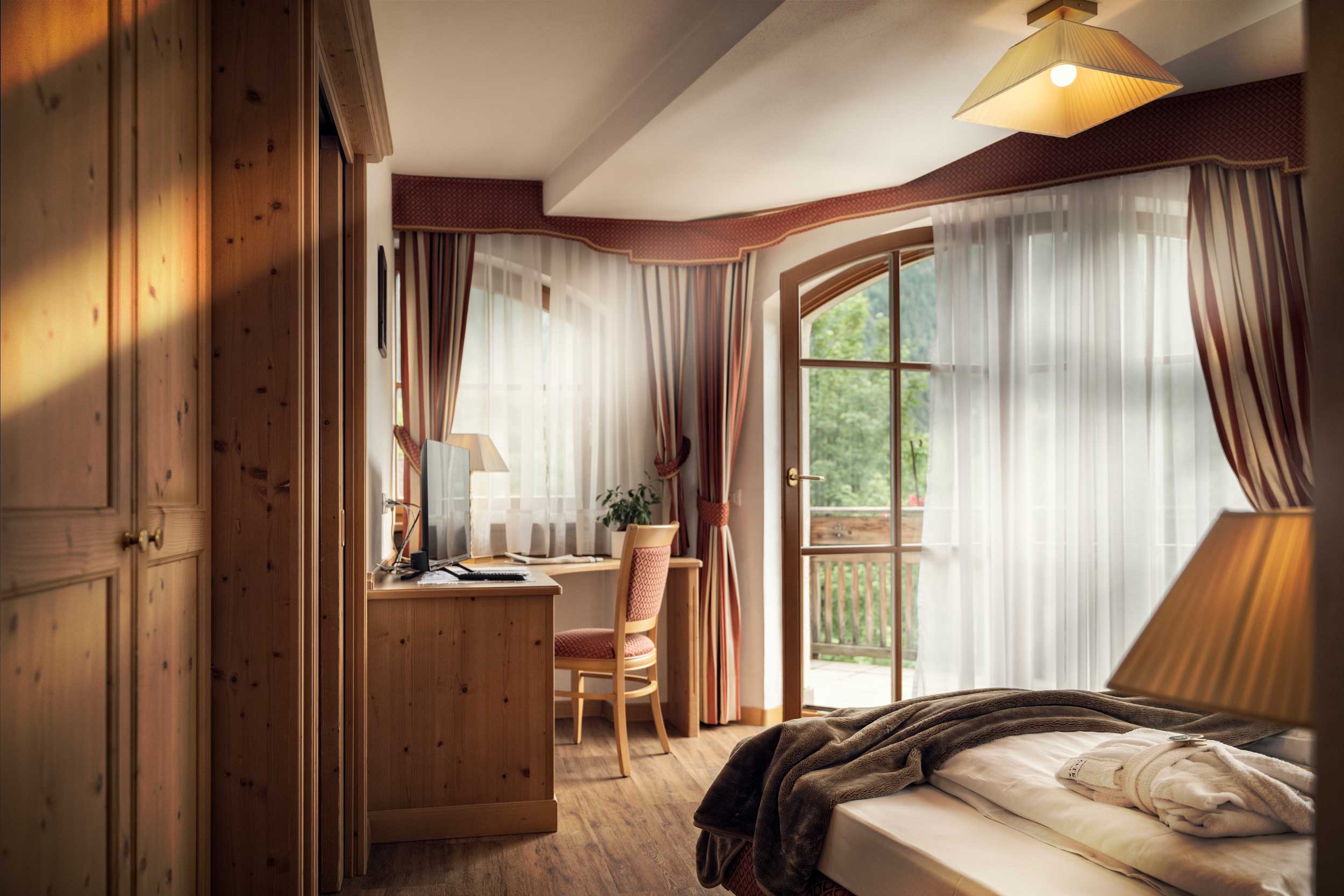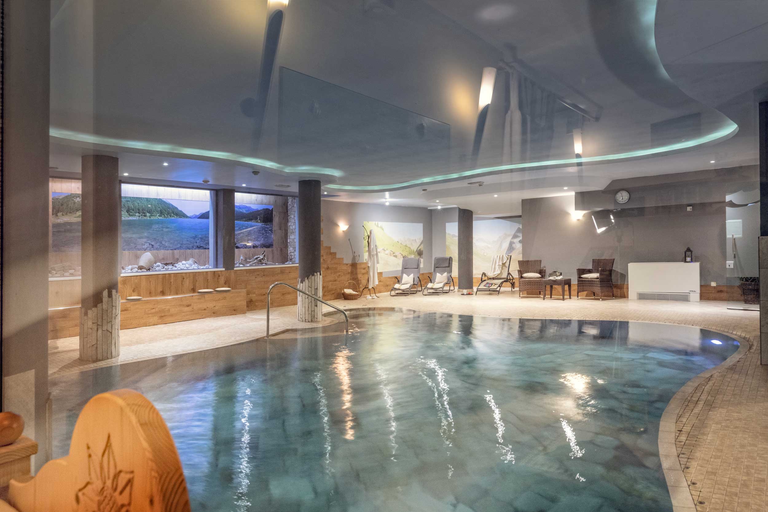 recepce, parkoviště, vinný sklep, restaurace, bar, Alpine Spa: bazén je otevřen denně od 7:00 do 19:00 hod., sauna denně od 14:00 do 19:00 hod. (sauna se zahřívá až na 90 stupňů Celsia, cenné dřevo z místních lesů a vůně bylinných nálevů se spojují a vytvářejí uklidňující celek), místnost s bylinkami (staří horníci z Valle Aurina by si tuto saunu s radostí užívali - příjemná teplota cca 38 stupňů Celsia, vlhkost vzduchu 60 procent a jemná bylinná vůně prospívají tělu i duši.), parní lázeň z přírodní kamenné jeskyně (masivní kámen z jihotyrolských hor, nejjemnější pára - speciální parní lázeň nabízí relaxaci při teplotě cca 45 stupňů Celsia a 100% vlhkosti.), galerie z břidlicových kamenů (podzemní wellness zážitek - v této parní lázni působí vzácné přírodní kameny a vůně místních horských květin - relaxujte při příjemných 60 stupních Celsia a 70% vlhkosti), relaxační zóna, wi-fi připojení
