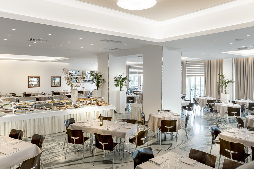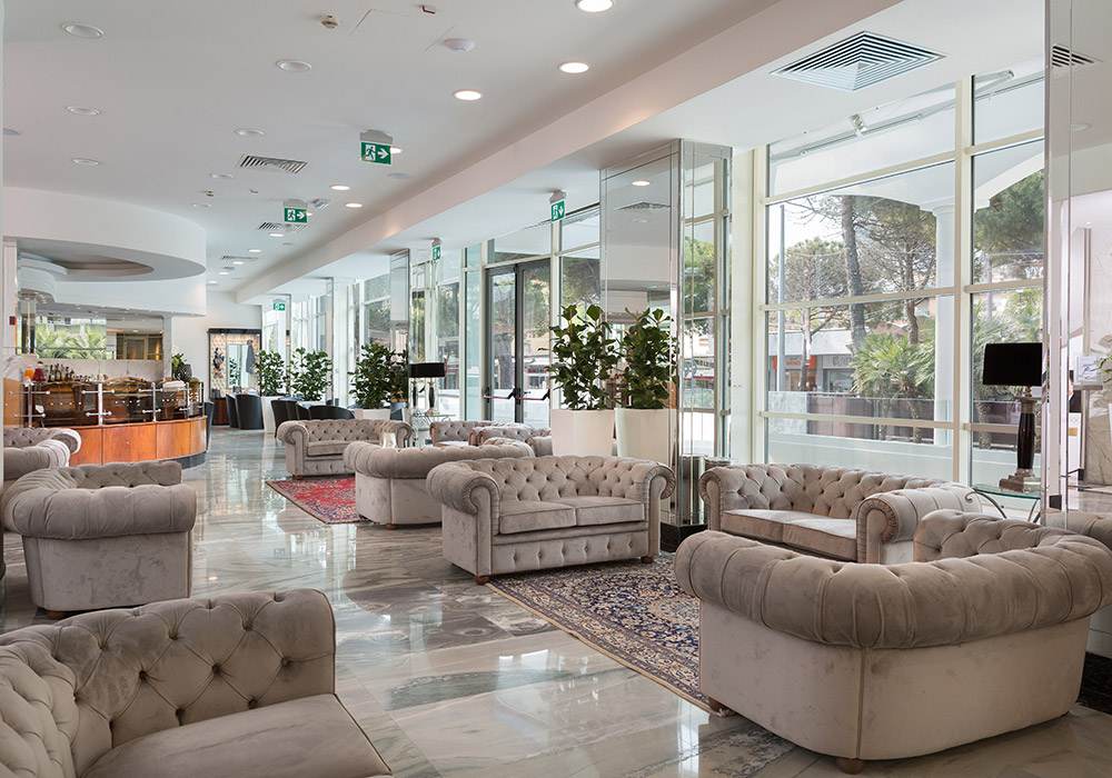 24hodinová recepce, venkovní bazén, solárium s lehátky a slunečníky, americký bar na koktejly a aperitivy, veranda pro chvíle relaxace, 7 modulárních zasedacích místností s kapacitou až 350 účastníků, soukromé placené parkoviště (dle dostupnosti), neomezené a bezplatné Wi-Fi v celém hotelu, zábava a miniklub v letních měsících, po celý den, v hotelu nebo na pláži