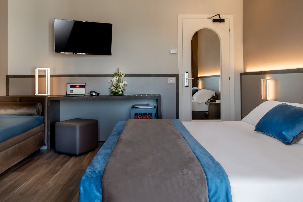 Pokoje Deluxe: 2lůžkové pokoje a 3-4 lůžkové pokoje (s kalkulací na vyžádání), kompletně zrekonstruované pokoje s novým a moderním vybavením s balkonem nebo francouzským balkonem, vlastní koupelnou se sprchou nebo vanou, fénem, trezorem, telefonem/budíkem, nezávislou klimatizací a topením, minibarem, 40" LED TV, sadou toaletních potřeb, psacím stolem, Wi-Fi, pokojová služba (na vyžádání), praní a žehlení prádla (na vyžádání)