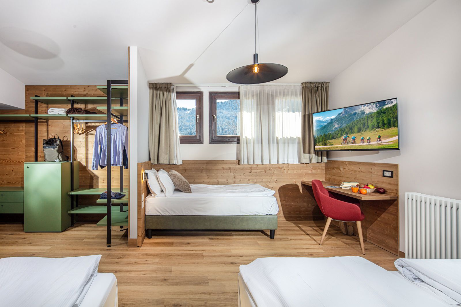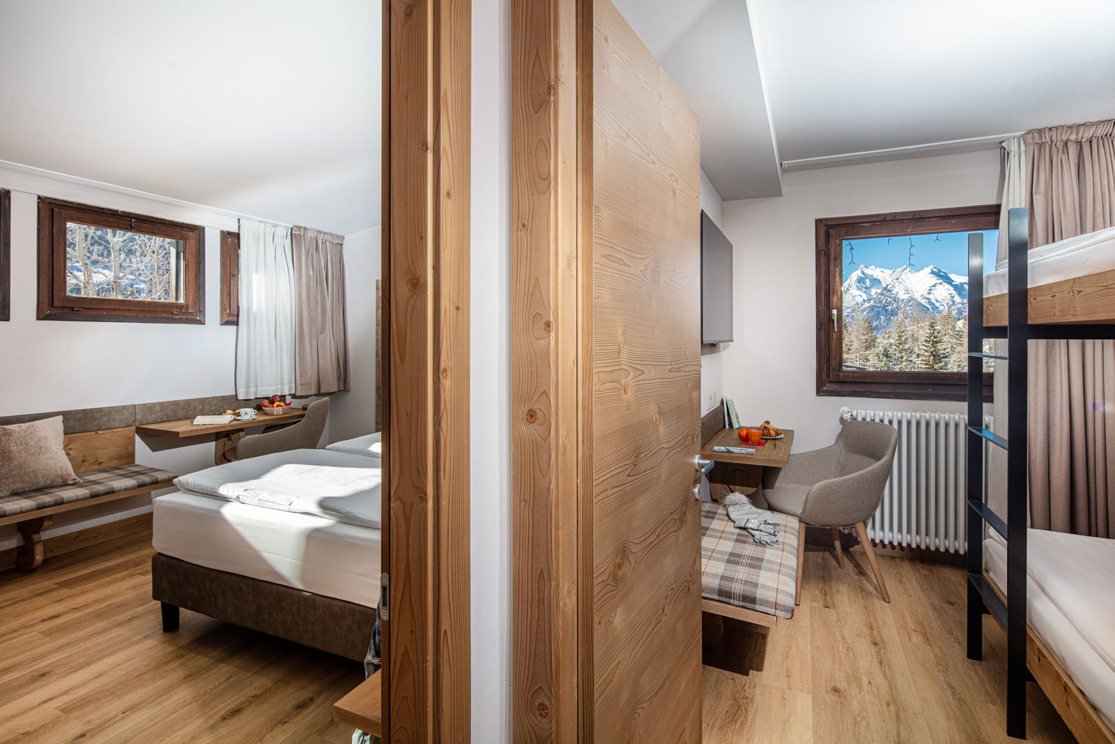 - pokoje typu FAMILY CLASSIC - prostornější pokoje až pro 4 osoby, manželská postel + některé mají patrovou postel, nebo 2 samostatná lůžka, většina s balkonem