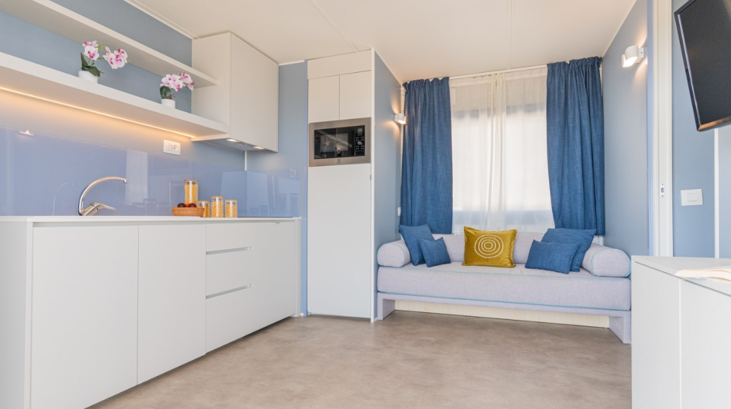 - JUNIOR SUITE MEDITERRANEA - 2x koupelna, 2x ložnice (1x manželská postel + 1x jednolůžková postel a 1x vyklápěcí postel), obývací pokoj s kuchyňským koutem (myčka, lednice, sporák, mikrovlnka), klimatizace, veranda - max. pro 4 osoby