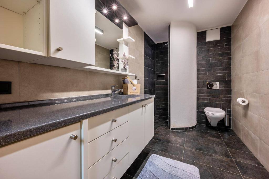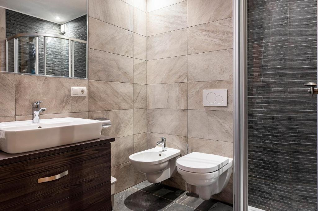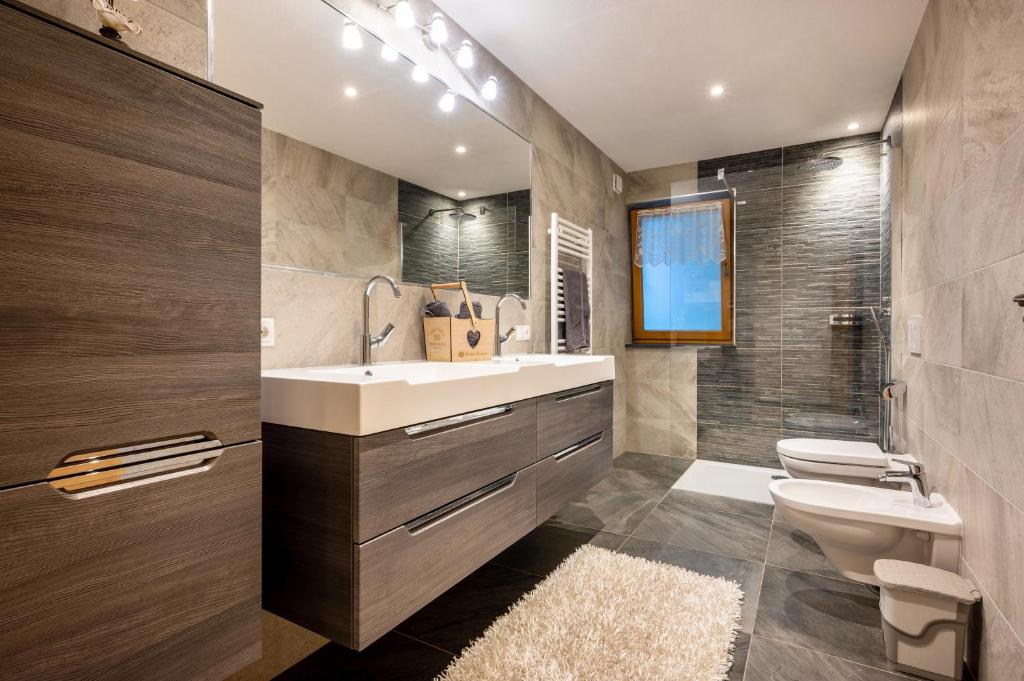 - 1 velká ložnice s manželskou postelí, 1 velká ložnice s manželskou postelí a rozkládací pohovkou, 2 koupelny se sprchou, WC a bidetem