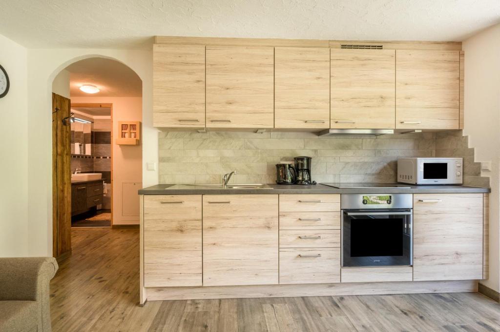 Apartmán Weise Zinne TRILO 4/6 - pro 4-6 osob - zaujme prostorným obývacím pokojem, elegantní dřevěnou podlahou a tradičními tyrolskými selskými kamny, apartmán se nachází v přízemí