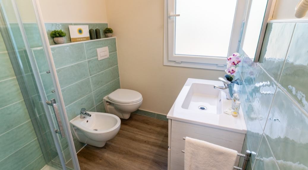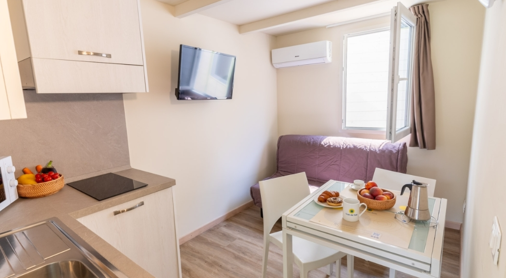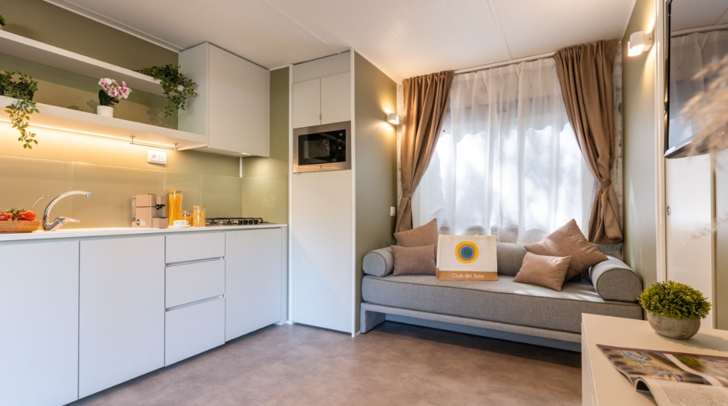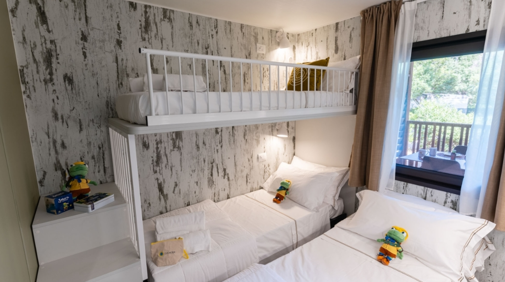 - JUNIOR SUITE MEDITERRANEA (max 4 osoby + dítě do 9 let) - 2x koupelna, 2x ložnice (1x manželská postel a 1x dvě jednolůžkové oddělené postele + patrová postel), obývací pokoj s kuchyňským koutem (lednice, mikrovlnka, sporák, mikrovlnka), veranda, klimatizace, WI-FI připojení