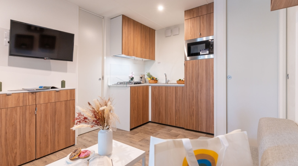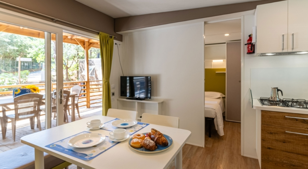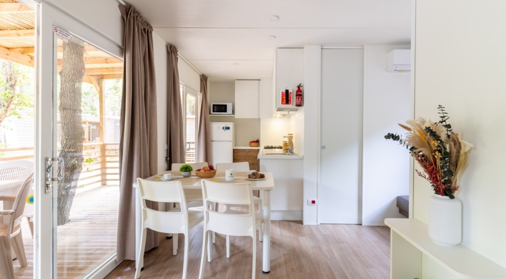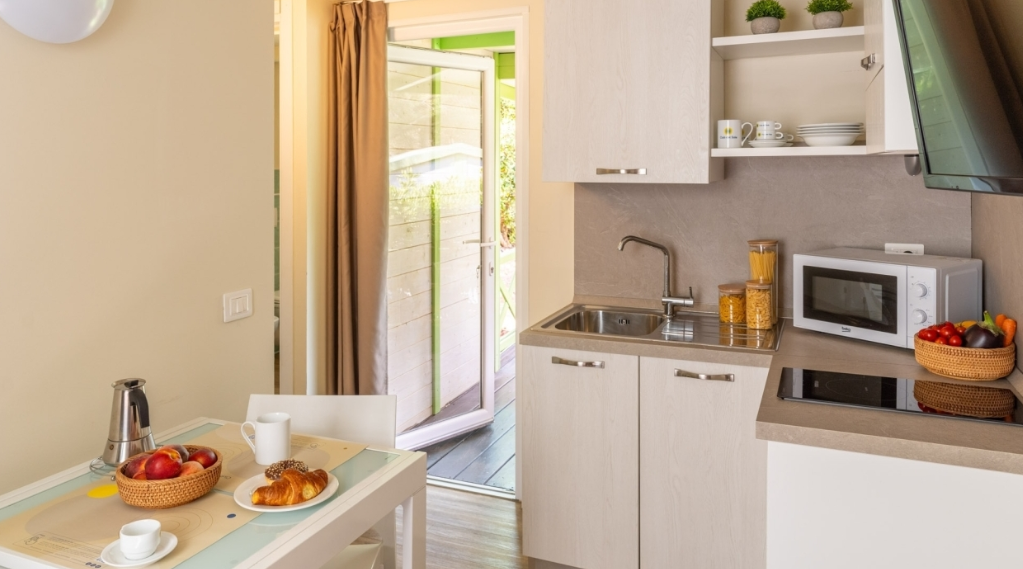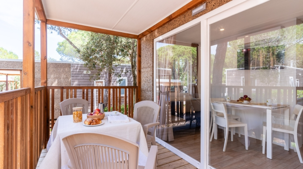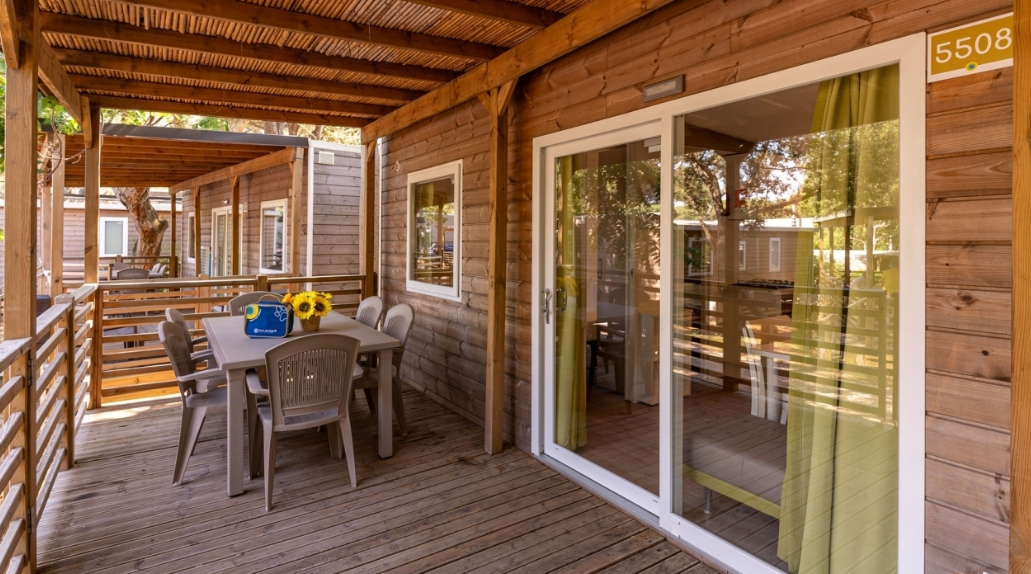 - LODGE COMFORT (max 4 osoby + dítě do 9 let) - 1x koupelna, 2x ložnice (1x manželská postel a 1x tři jednolůžkové postele), obývací pokoj s kuchyňským koutem (lednice, mikrovlnka, sporák), veranda, klimatizace, WI-FI připojení