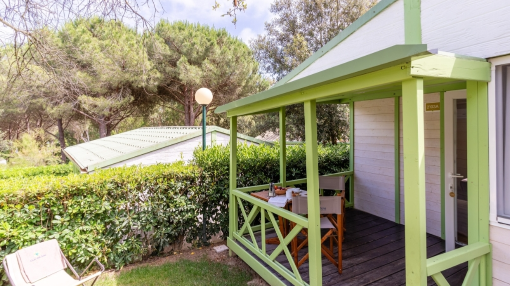 - COTTAGE DELUXE (max 2 osoby + dítě do 9 let) - 1x koupelna, 1x ložnice s manželskou postelí, obývací pokoj s rozkládací pohovkou, kuchyňský kout (lednice, mikrovlnce, elektrický vařič), veranda, klimatizace, WI-FI připojení